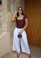 Este body en tono marrón chocolate es perfecto para quienes buscan comodidad, estilo y soporte en una sola prenda. Cuenta con faja interna con control de abdomen, ideal para definir la cintura y estilizar la figura sin sacrificar libertad de movimiento.