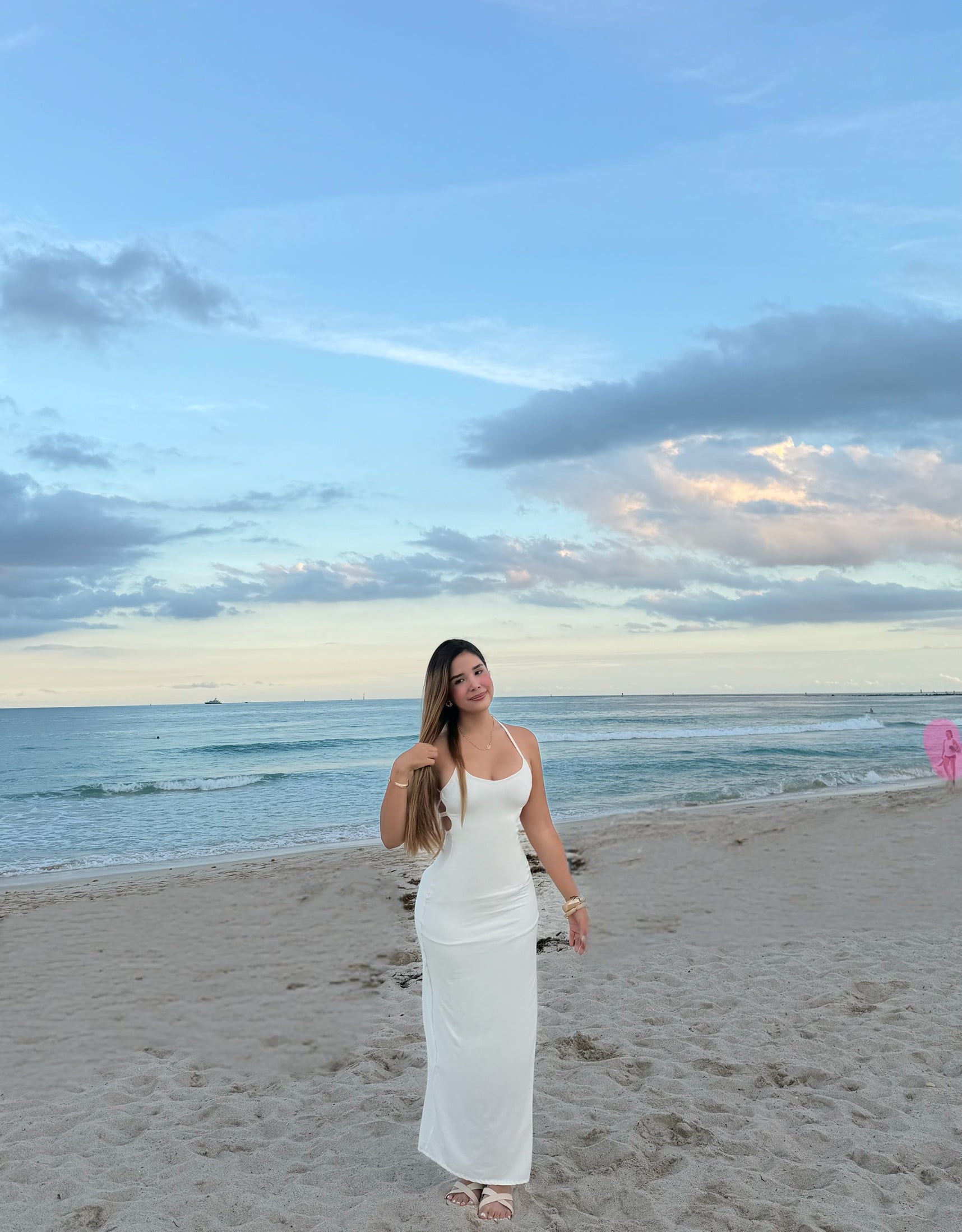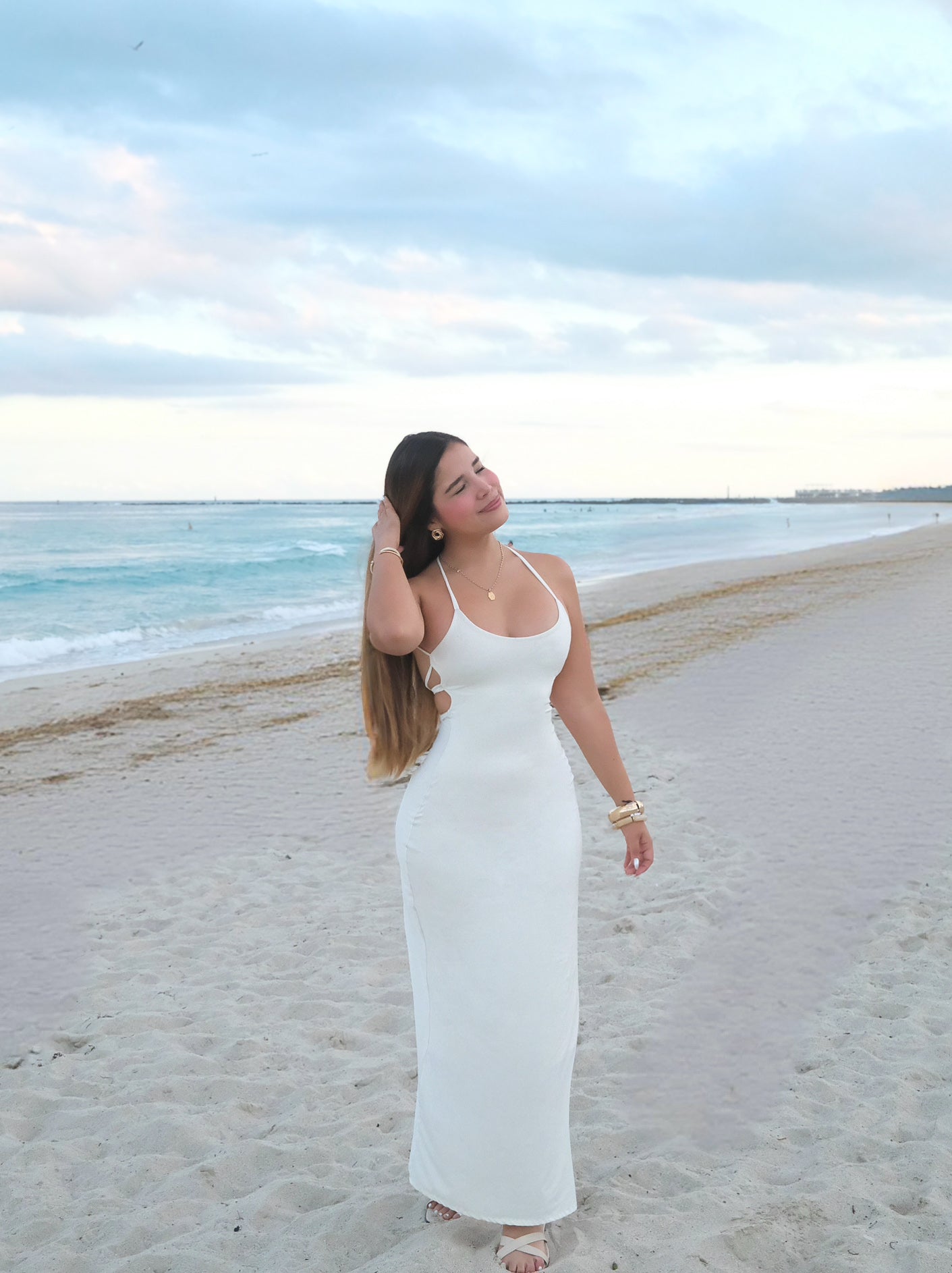 Con un escote recto y tirantes delgados, este vestido es ideal para eventos de noche, cenas elegantes o celebraciones especiales. La caída recta y fluida aporta movimiento y sofisticación a cada paso.