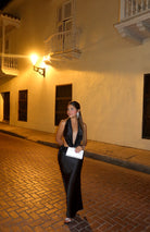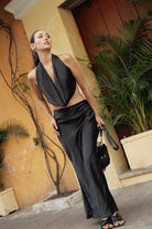 Brilla con elegancia en cada paso con el Set saten , un conjunto ideal para ocasiones especiales. Su top halter drapeado aporta un escote sensual y moderno, mientras que la falda de tiro alto con control de abdomen define y estiliza tu silueta. La tela satinada envuelve el cuerpo con suavidad, brindando una apariencia lujosa sin dejar de ser cómoda.