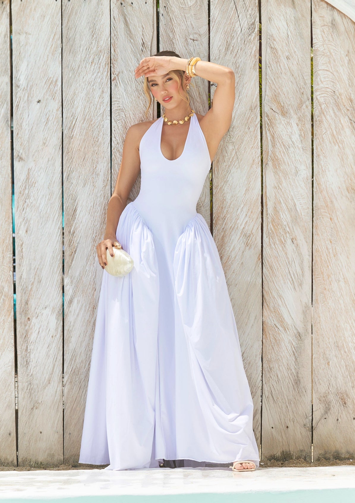 Romántico, fresco y ultra femenino, este vestido largo color blanco es perfecto para ocasiones especiales en climas cálidos. Su diseño ajustado al cuerpo resalta la silueta con delicadeza, mientras que la faja interna oculta moldea la figura y proporciona una sensación de firmeza y confort.