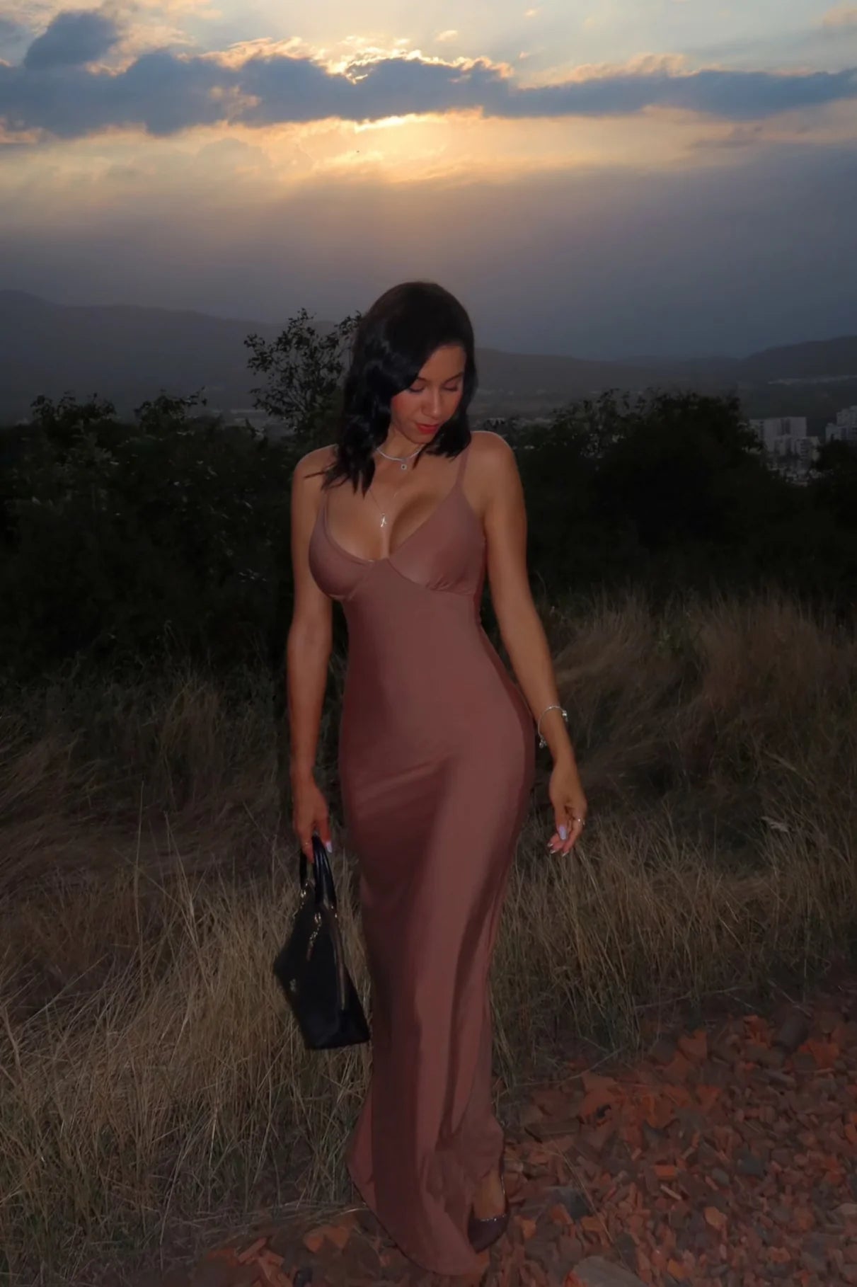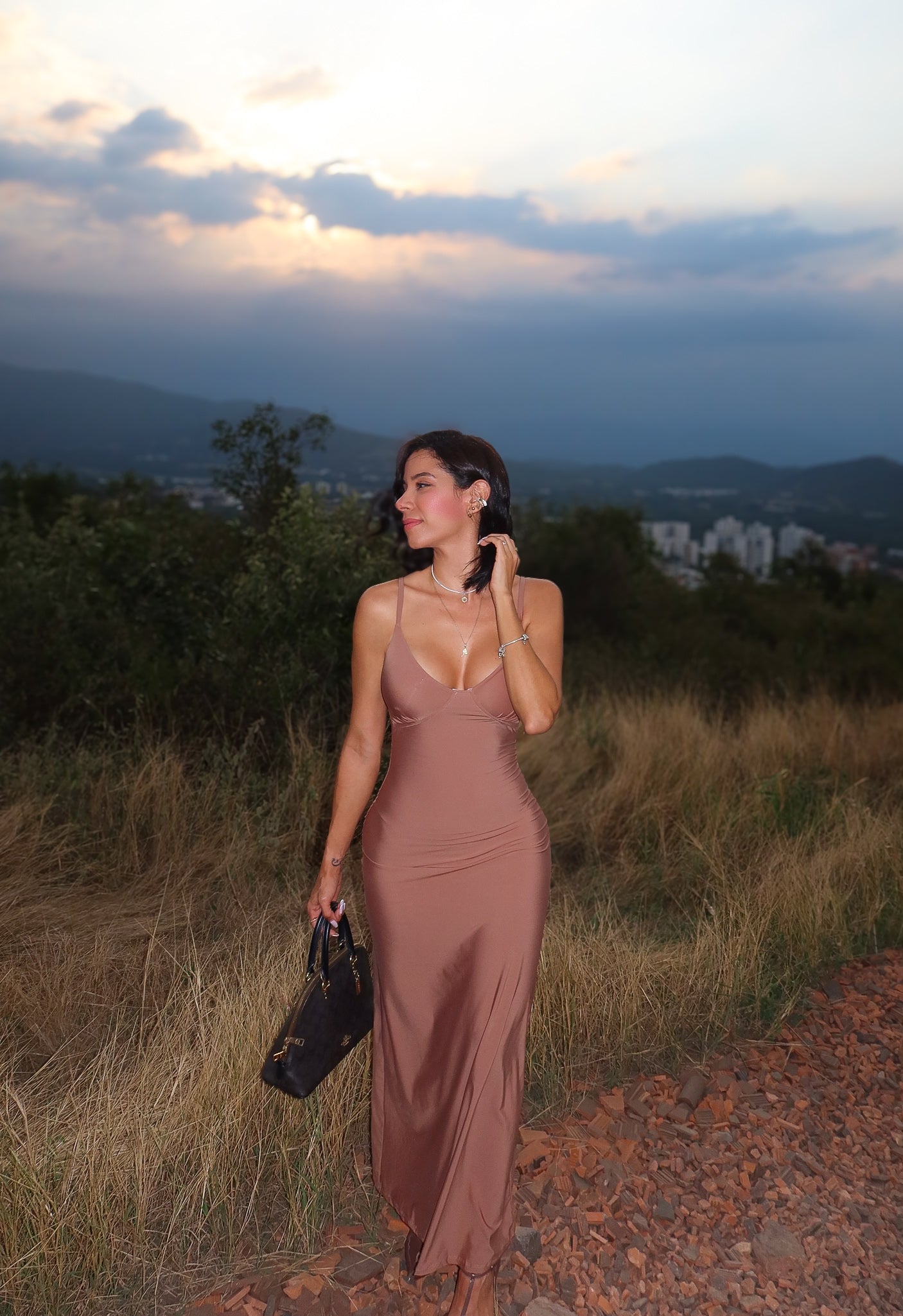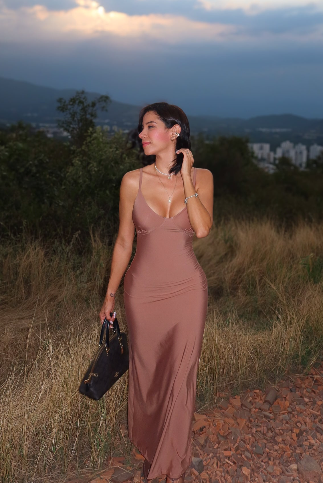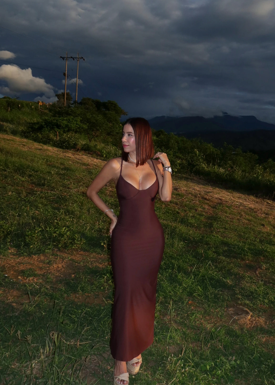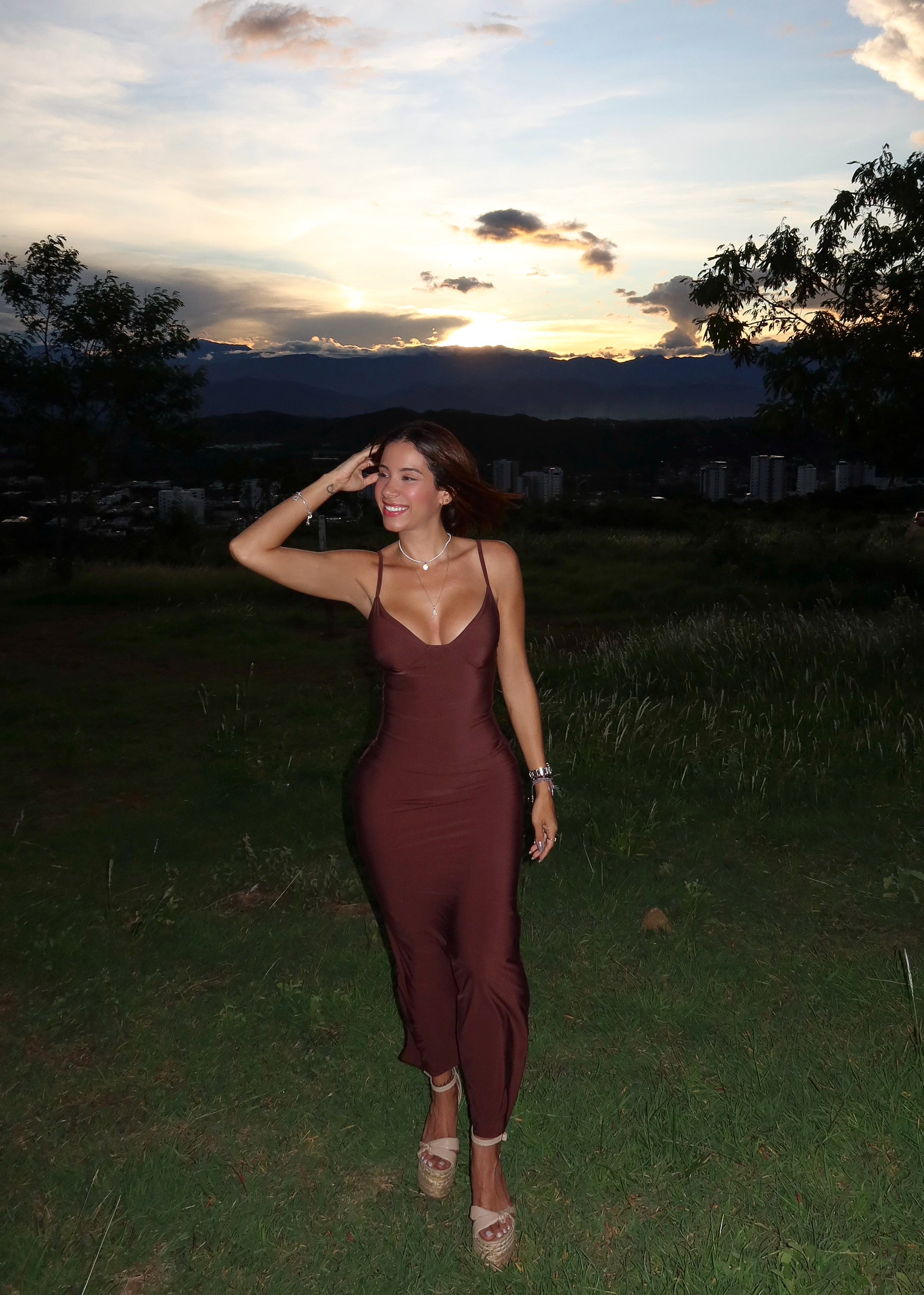 Vestido georgina con control de abdomen largo cafe