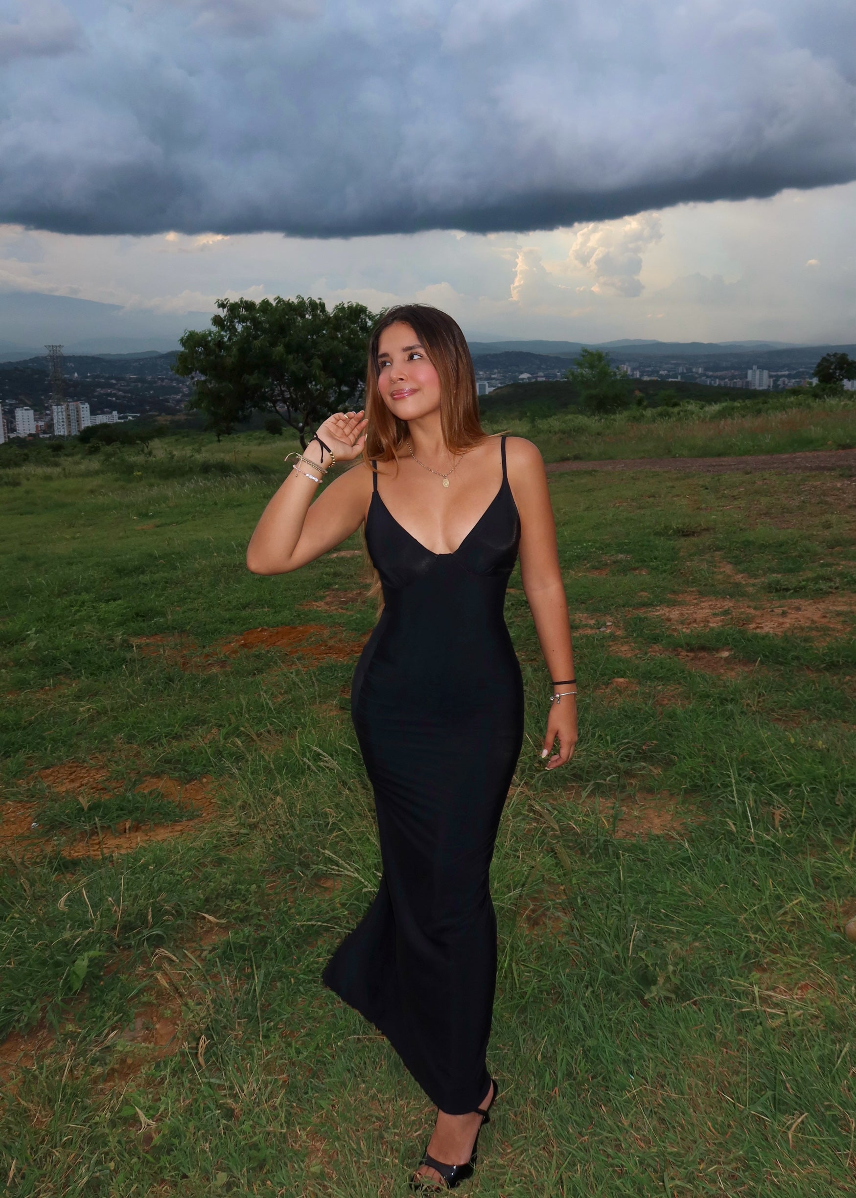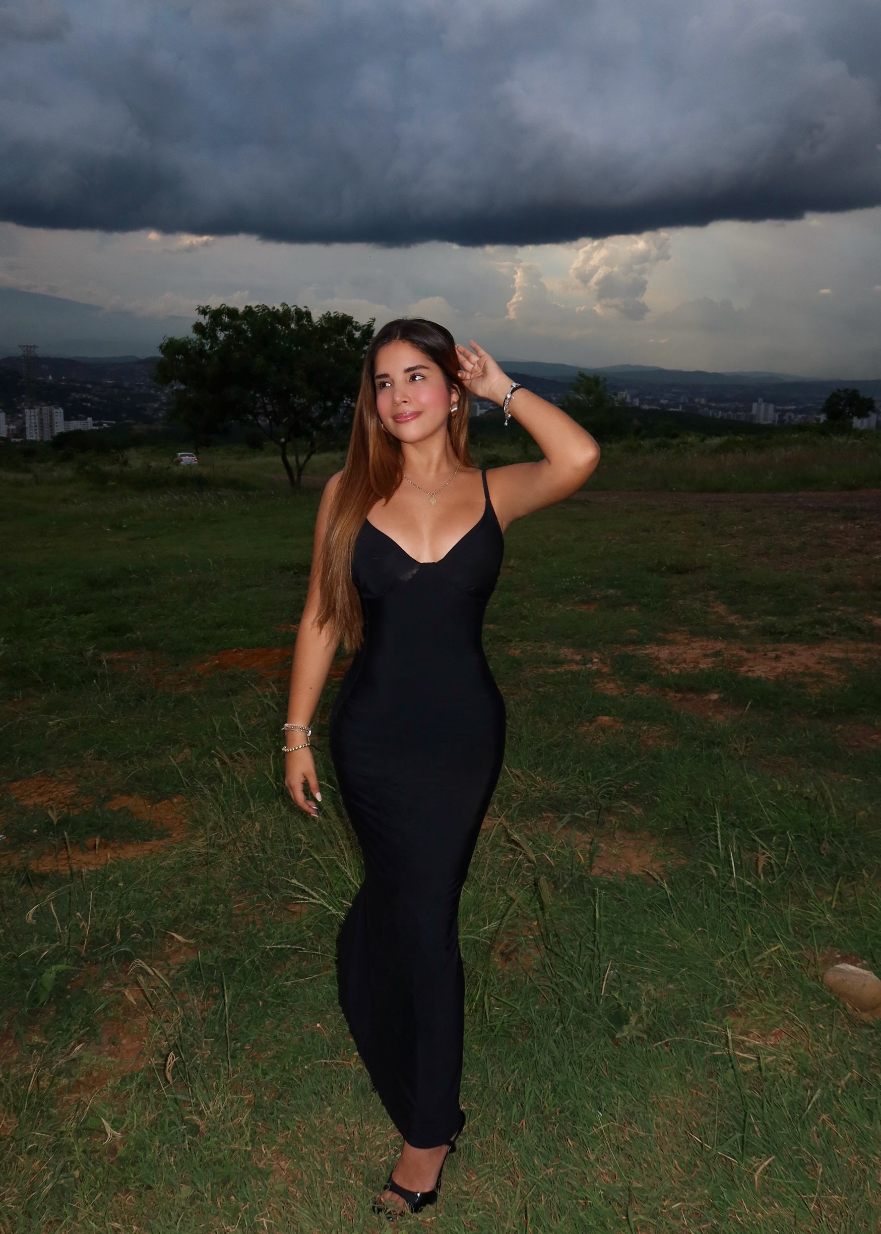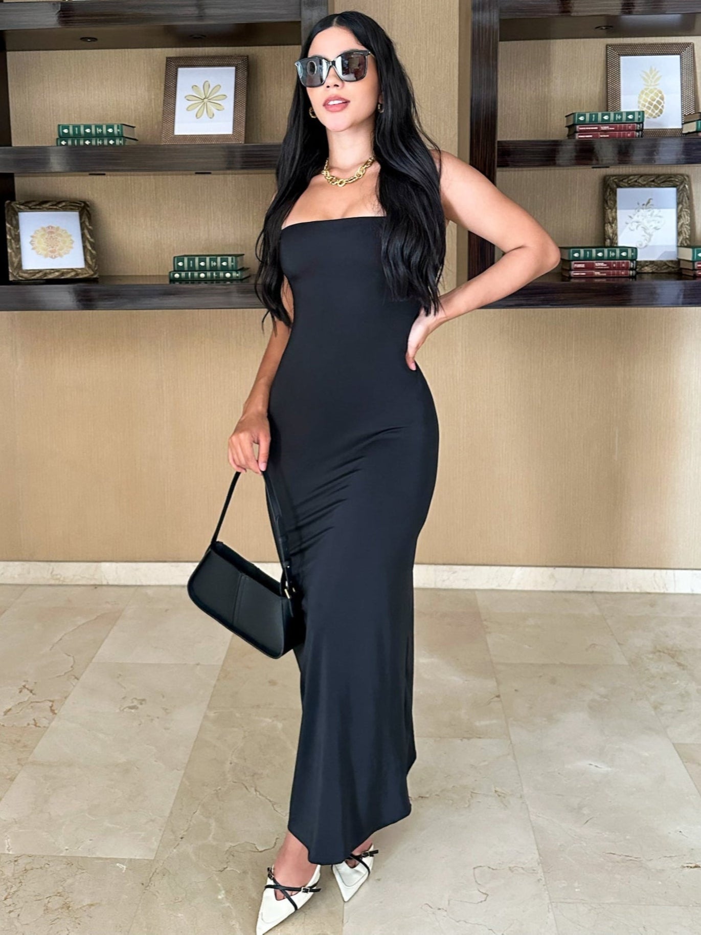 Vestido Laura con control de abdomen largo negro