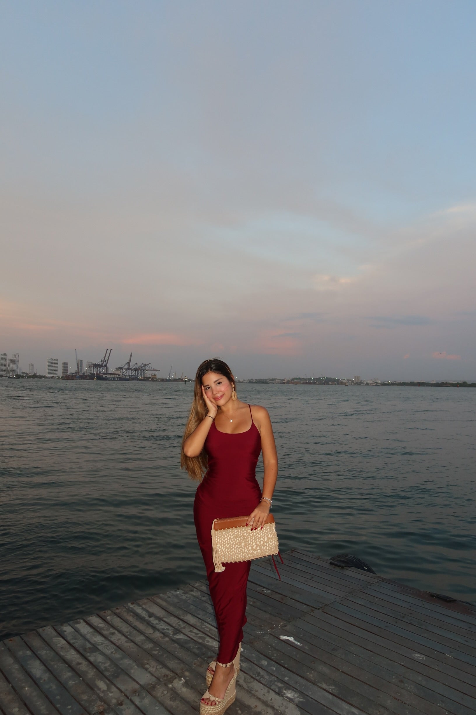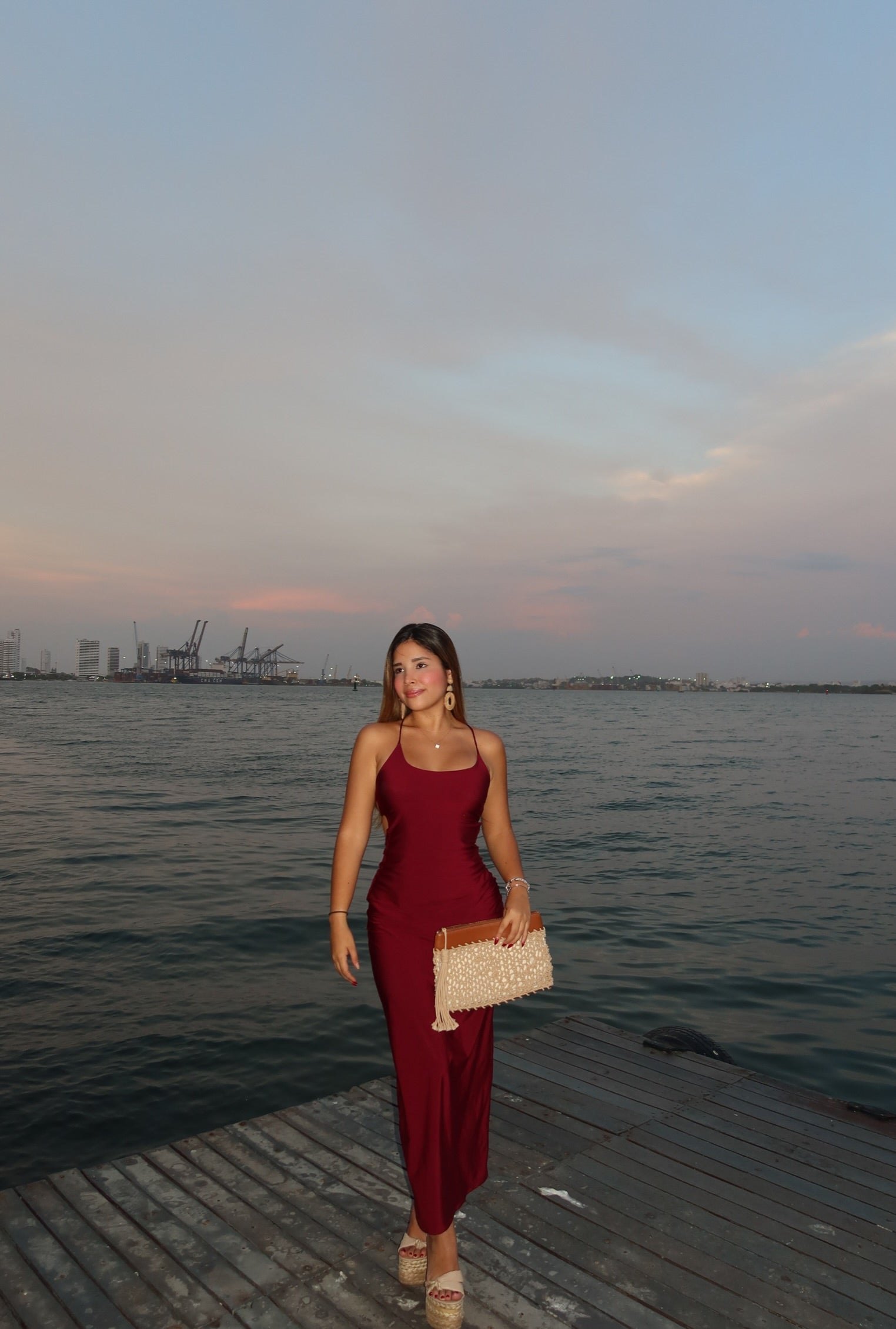 Vestido Amelia Vino con Faja Interna