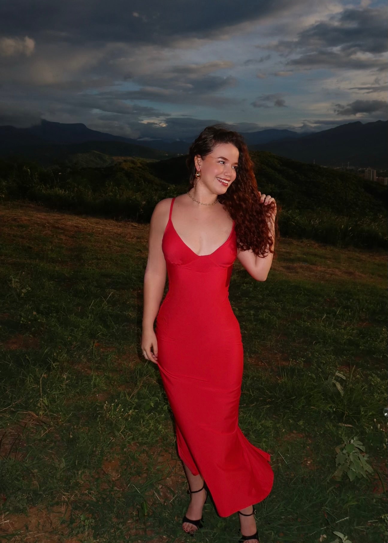 Vestido georgina con control de abdomen largo rojo