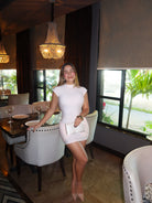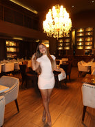 Este vestido corto en color beige es mucho más que una prenda elegante: está diseñado para realzar tu figura gracias a su faja interna con control de abdomen. Su silueta ajustada se adapta al cuerpo definiendo la cintura y alisando el vientre, mientras que su falda con volantes añade un toque femenino y sofisticado.