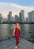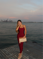 Es la pieza perfecta para deslumbrar en cualquier ocasión. Su intenso color rojo vino, combinado con un diseño minimalista de tirantes finos y corte ceñido, realza la figura mientras ofrece soporte gracias a su control de abdomen integrado. Ideal para cenas elegantes, eventos especiales o una noche inolvidable, este vestido es puro glamour y comodidad.