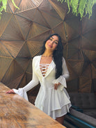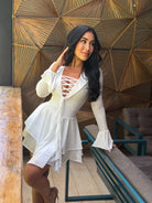 Este vestido corto en color blanco es mucho más que una prenda elegante: está diseñado para realzar tu figura gracias a su faja interna con control de abdomen. Su silueta ajustada se adapta al cuerpo definiendo la cintura y alisando el vientre, mientras que su falda con volantes añade un toque femenino y sofisticado.